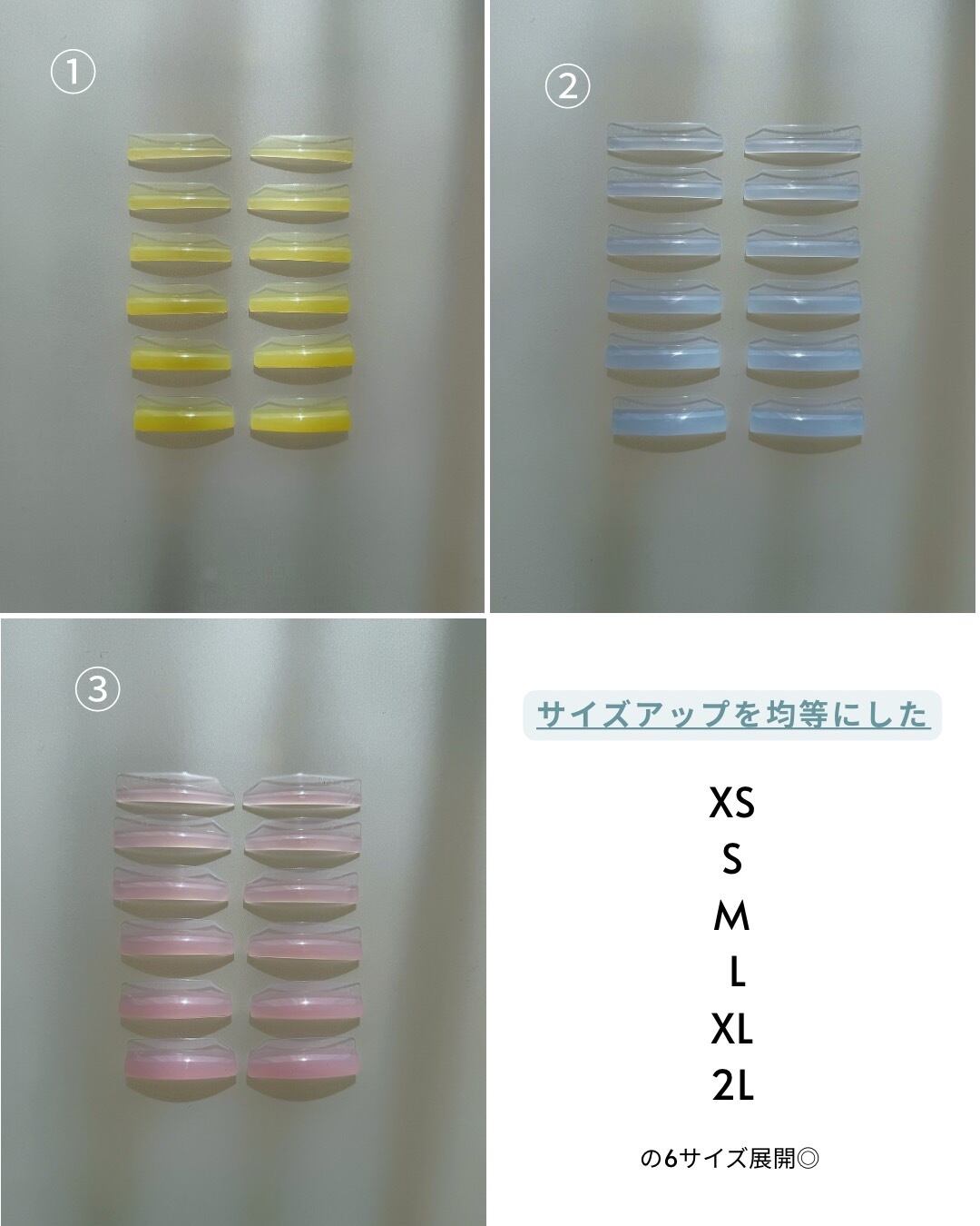 ①②③どれも6サイズ展開となっており、